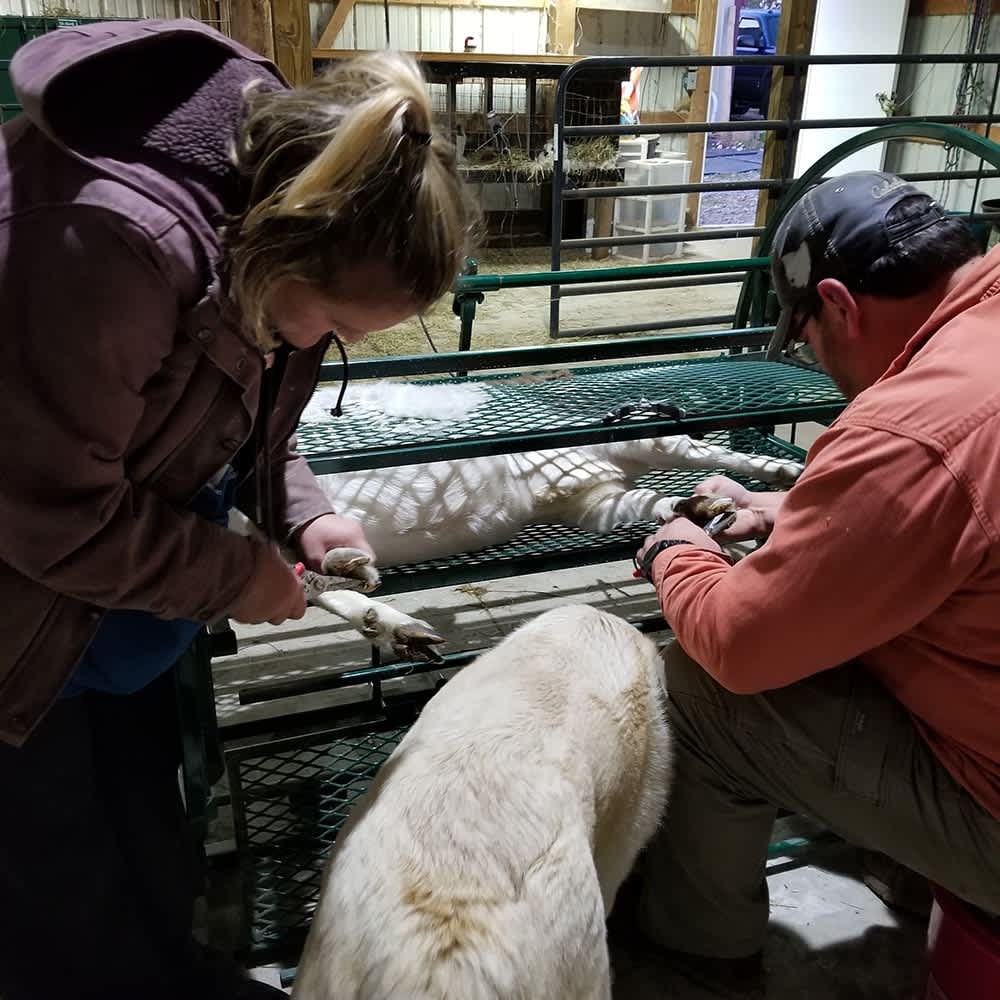 For example, when we trim hooves, we often use tables and restraints and ask our animals to lift their foot off the ground so we can access the bottom. These postures aren’t typical for our animals and can create issues with balance, fear, and comfort for the animal.