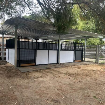 Each unit includes a 4ft sliding stall front door, with optional feed swing, v-door, or drop-down access. The clean, open layout helps improve ventilation while keeping horses visible and engaged with their surroundings.