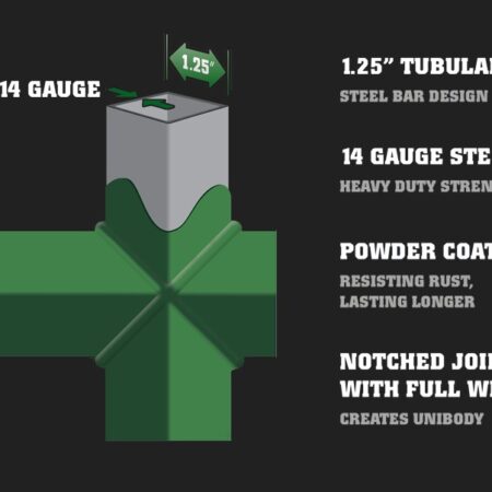- 2”x2” square tube frame with capped ends