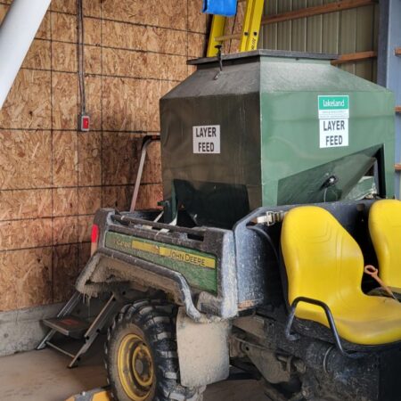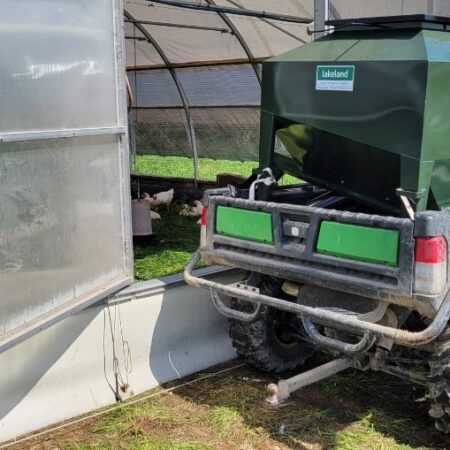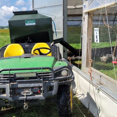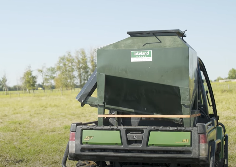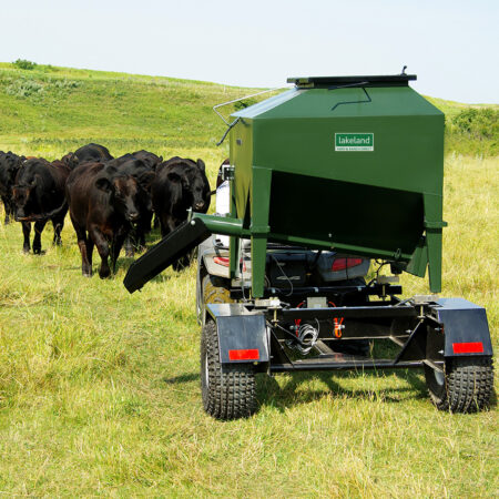 We have this UTV Easy Feeder with the trailer kit. It works pretty well for us. We supplement oats for 400 ewes with it. I wanted it because its safer around the sheep than big machinery.