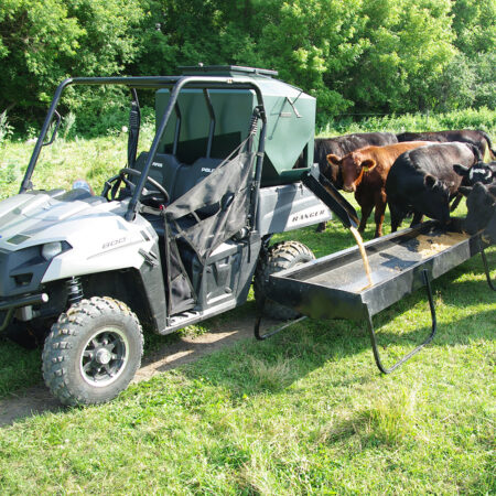This cattle feeder attaches securely to most UTVs, turning your vehicle into a mobile feeding solution. Its large 15-bushel hopper holds ample feed, helping you cut time spent moving between troughs or bunks.