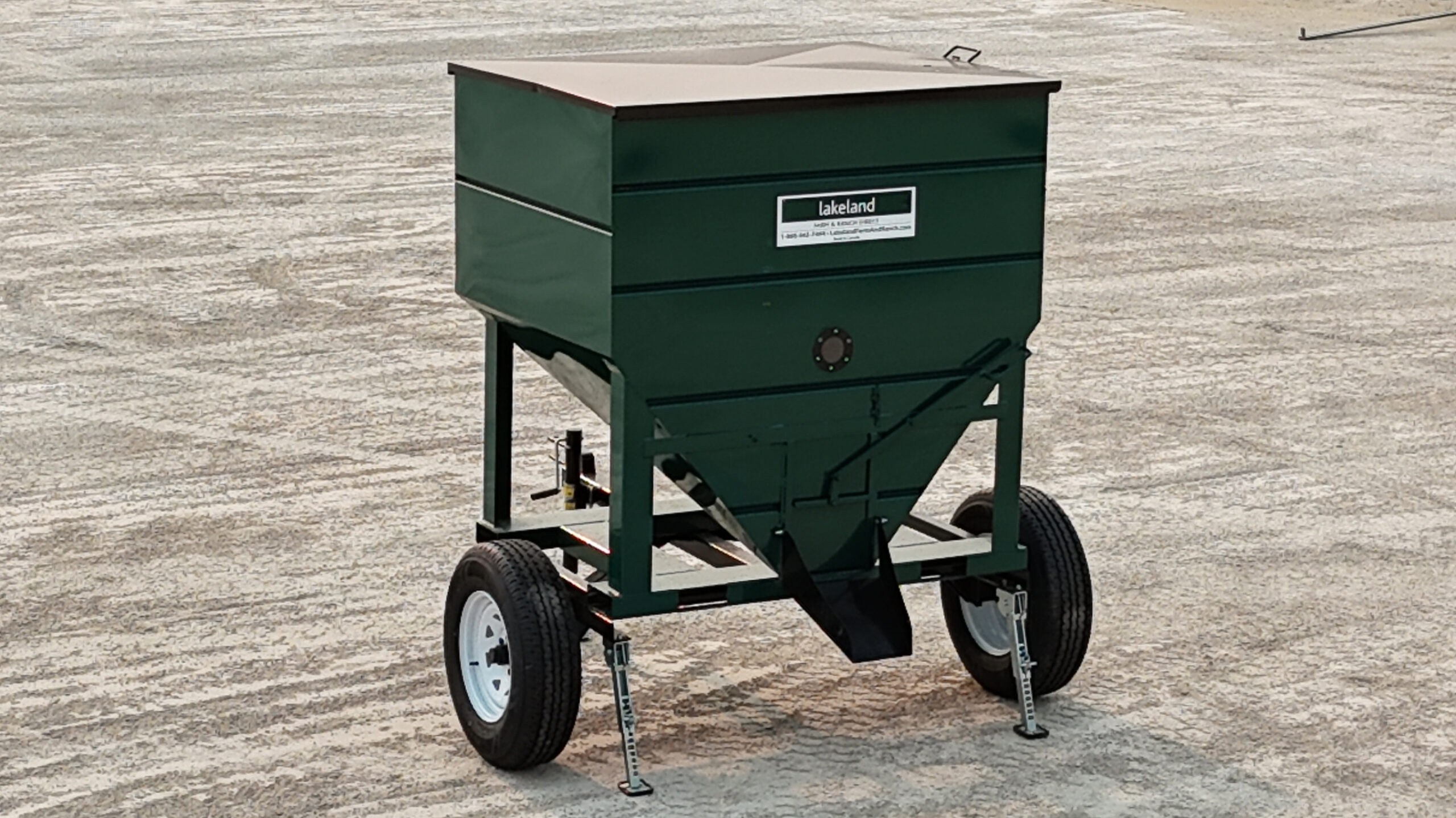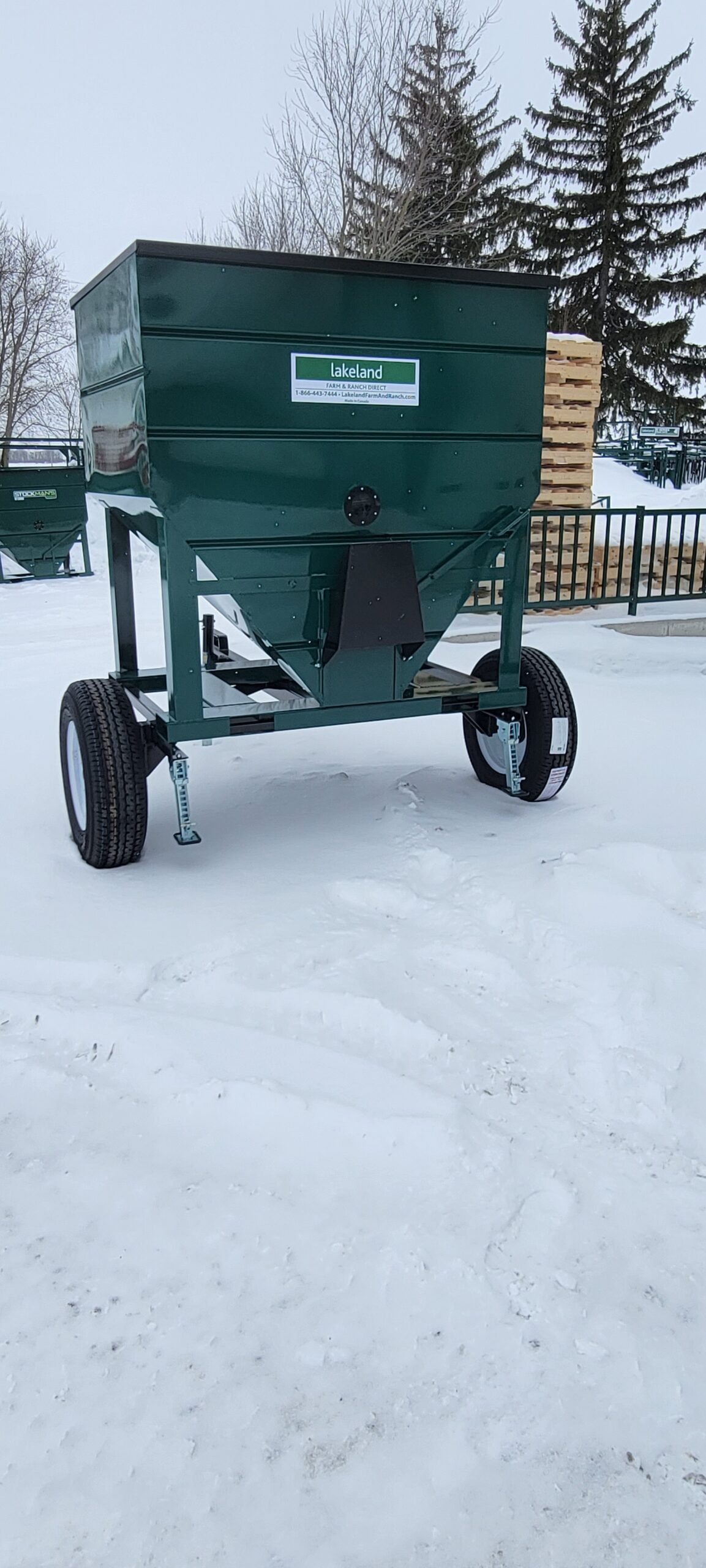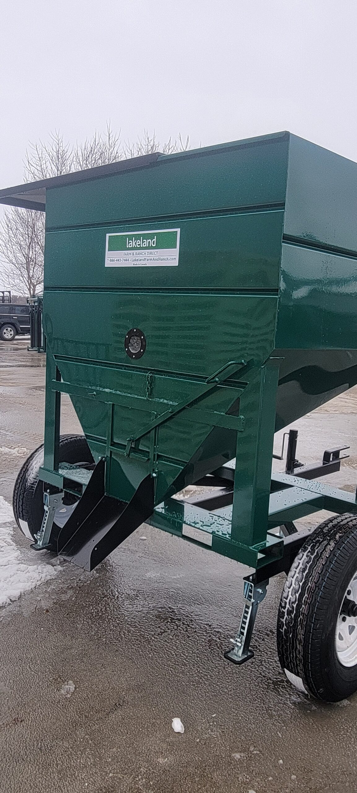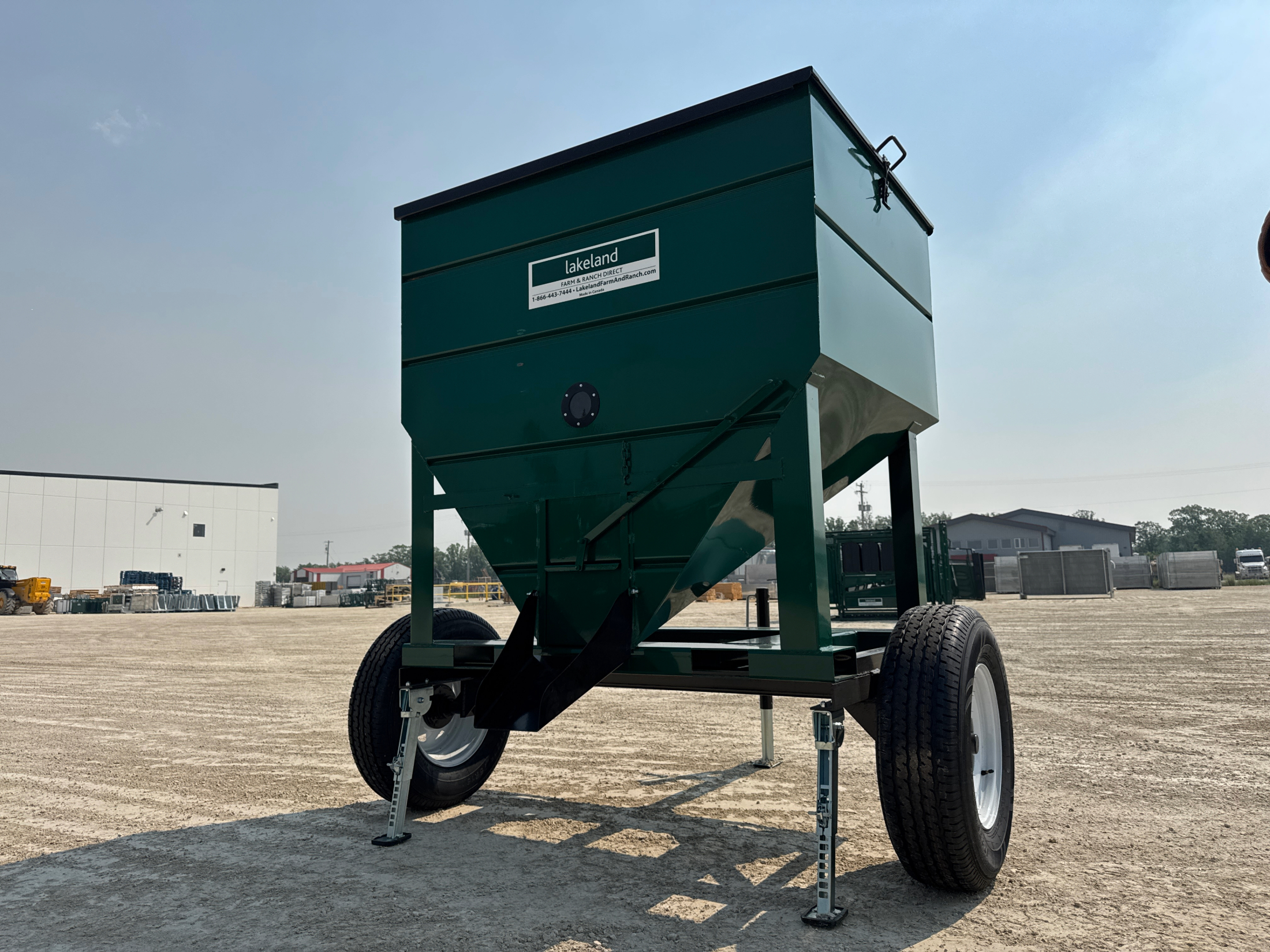 The 3000lbs Capacity Portable Mini Feed Bin with Trailer from Lakeland is a versatile and durable solution for storing and transporting feed, seed, mineral, or premix. With a capacity of approximately 3000 lbs or 1 tote bag, this bin keeps your supplies safe and preserved. Built with 14-gauge sheeting and a smooth powder coat finish, it’s designed to withstand harsh weather conditions. The bin features a weatherproof steel slide lid, sight glass for easy monitoring, and four-way fork pockets for convenient moving. The trailer kit, complete with a pin hitch and jack, allows you to tow the bin around your farm, bringing feed directly to your animals or to any location where it’s needed. Compact dimensions (5’L x 5’H x 4’W) make this bin a perfect fit for efficient farm operations.
