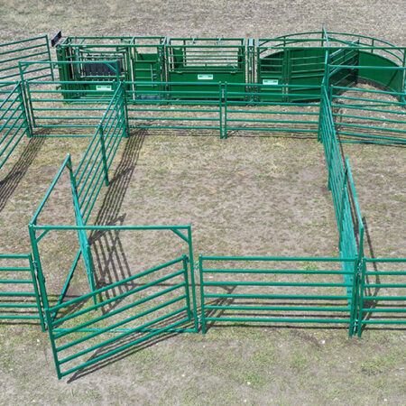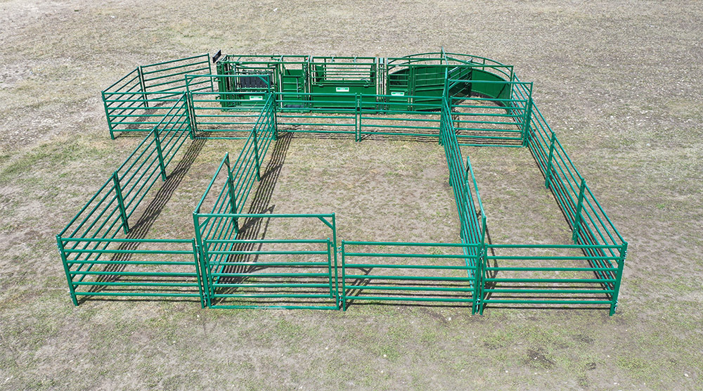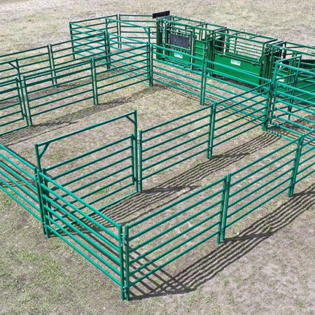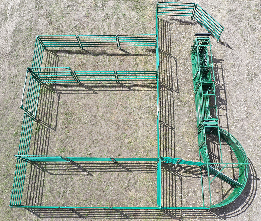 Corral Panels and Bowgates: Finally, the system includes 19 ten-foot corral panels and five ten-foot bowgates. This allows flexible configurations for varying herd sizes and needs.
