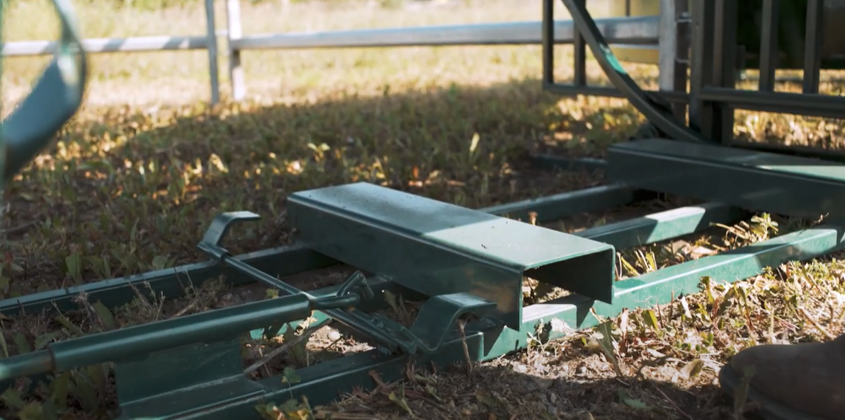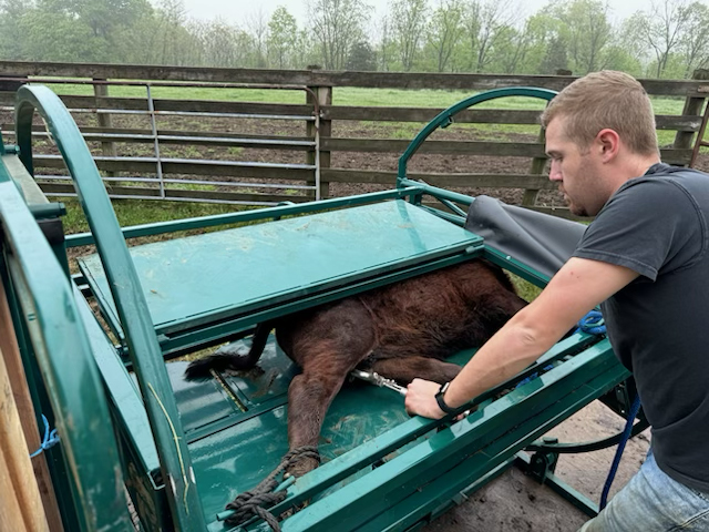 - Lower flip up panel both sides for easy access to hooves–bottom access door gives 20″ high space x 52″ wide.