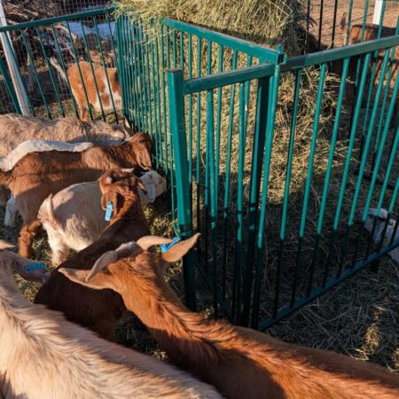 I purchased 2 of the 3″ Spacing Collapsible Sheep & Goat Feeders for my messy herd. We were going through one large round bale every few days due to the wasteful nature of goats. I put a fresh bale in the feeders when they arrived 16 days ago and those bales are still going strong because the goats haven’t been able to jump on top and spread them out.