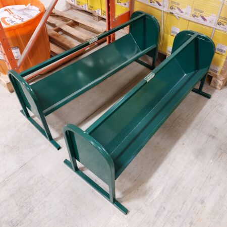 - Center bar through middle for easy lifting and to prevent lambs/kids from getting into trough