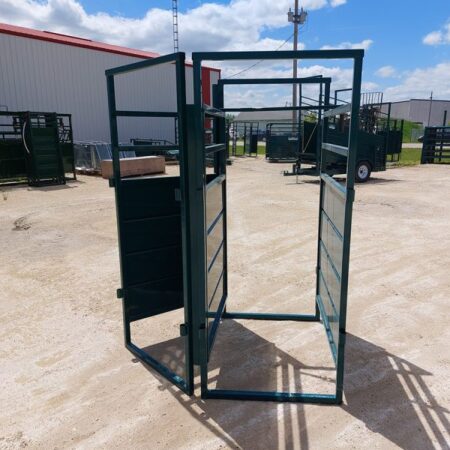The E-Series Straight Line Sort Gate provides an efficient and durable solution for sorting cattle in two directions. Cattle can either move straight ahead or angle off to the right, offering flexibility in your sorting process. The 31” wide inside alley ensures smooth cattle movement, while the sturdy 1.5” square tube frame with 0.125 wall thickness guarantees long-lasting durability. Built with 14-gauge sheeting and a powder-coated finish, this sort gate is designed to withstand tough farm conditions. With overall dimensions of 4’L x 5’W, it integrates easily into your cattle handling system.