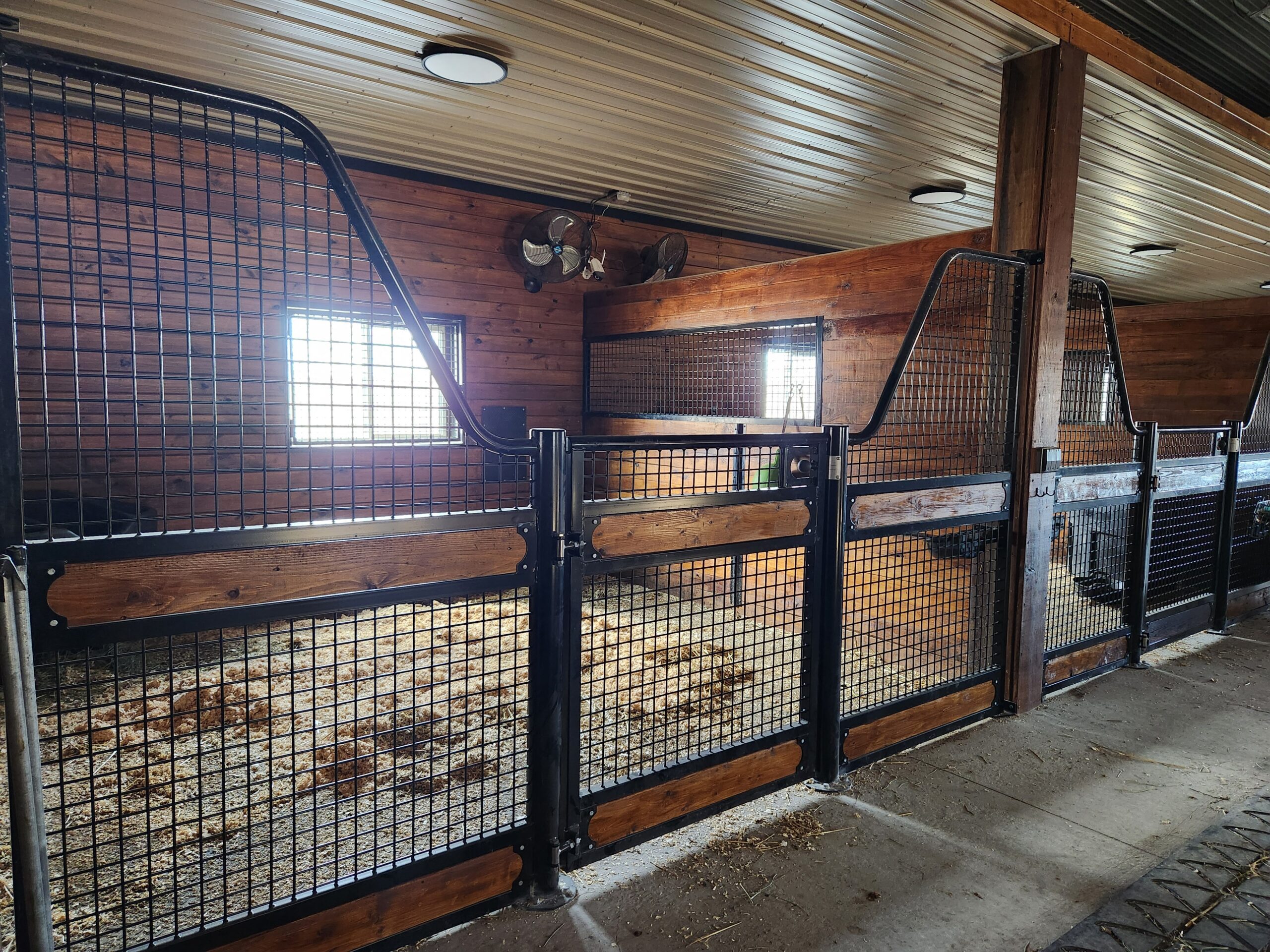 - 2″ x 2″ x ¼” steel mesh on bottom half of the stall