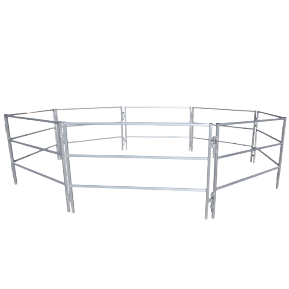 - Each corral panel consists of 2 panels hinged together. When unfolding, the panel measure 12ft in length