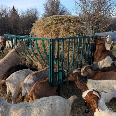 • Includes ½” rods between existing flat bars (to prevent sheep/goat from getting inside the feeder)