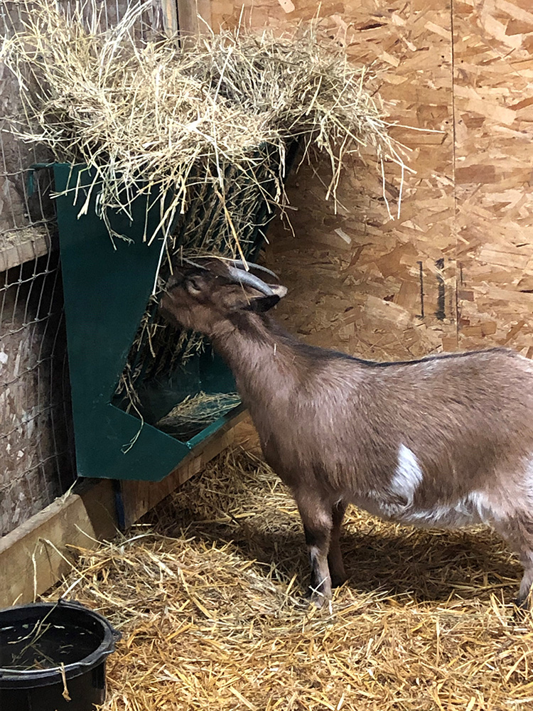 Good product. Goats are notorious hay wasters as they typically scatter it. Hopefully there’s a little less of the feed ending up as bedding.
