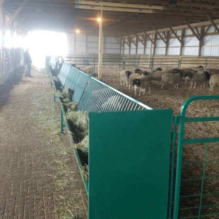 Built tough for hardworking farms, the Hay & Grain Fenceline Feeder from Lakeland Farm and Ranch Direct is your go-to solution for efficient sheep and goat feeding. Available in 8ft and 10ft lengths, this freestanding goat hay feeder is ideal for delivering hay, grain, silage, or TMR directly along the fence line. Its bolt-together design allows for continuous runs, and the adjustable trough height (12″–20″) ensures comfort for animals of all sizes. Save time, reduce feed waste, and keep your livestock well-fed with this rugged, ranch-ready feeder.