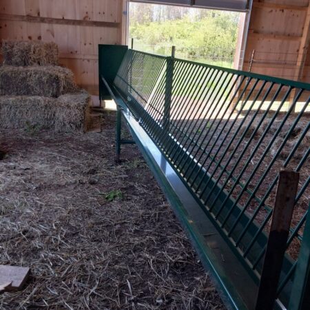 The Hay & Grain Fenceline Feeder designed for continuous feeding, reducing waste, improving access, and keeping livestock fed efficiently.
