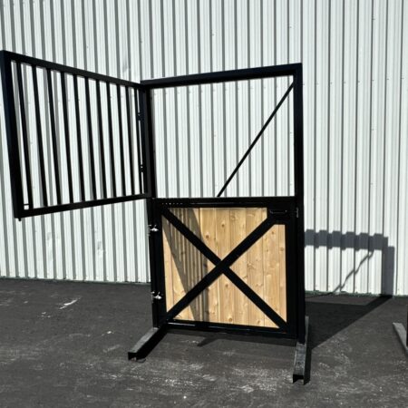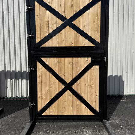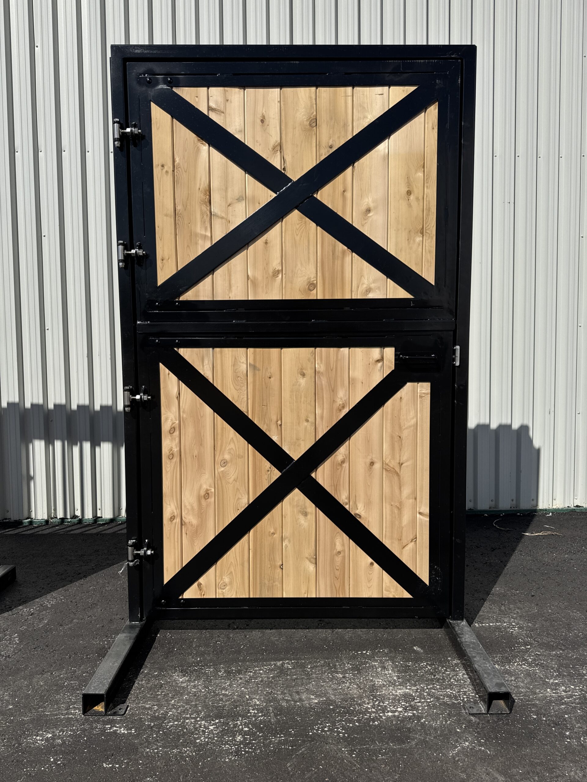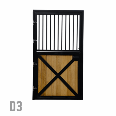 The split-door design allows the top half to open, inviting fresh air and natural light into the stall, while creating a welcoming connection between horse and handler. The bottom half remains secure, ensuring safety without sacrificing style.