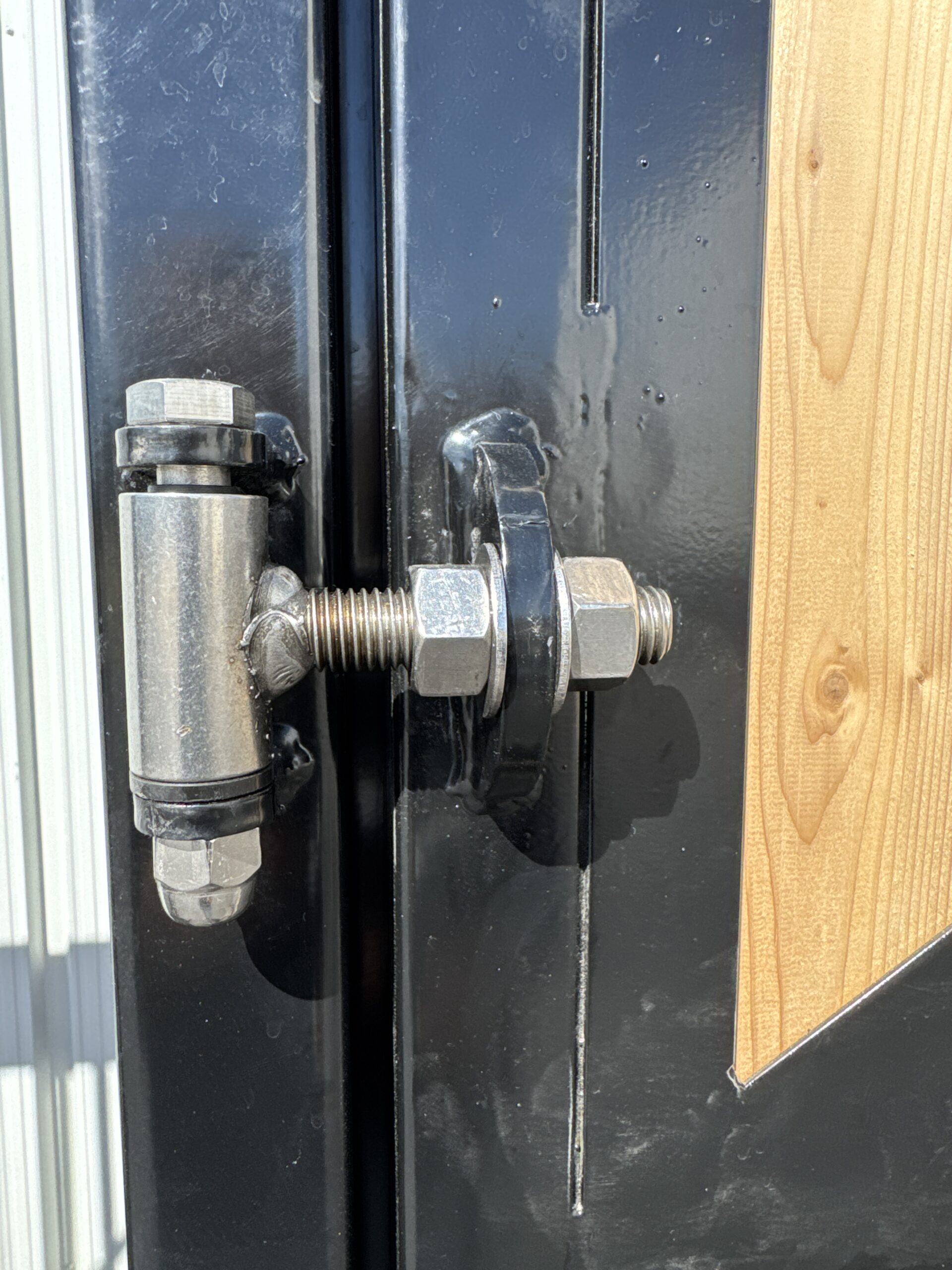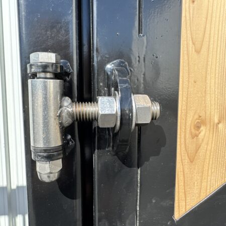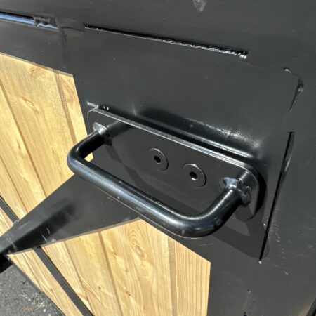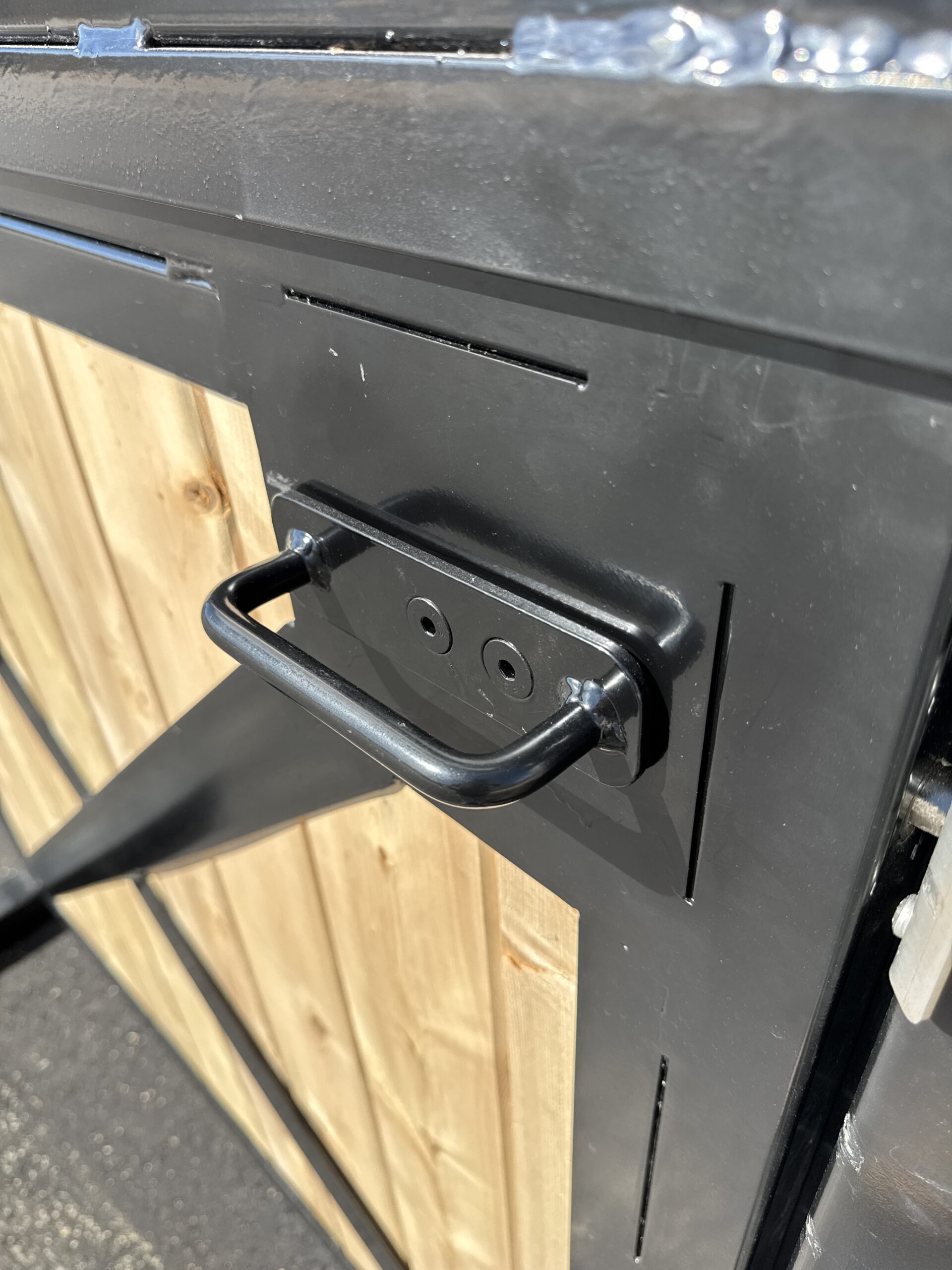 - Spring loaded metal D handle latch – made with a ½’’ steel round bar welded on a 3/16’’ plate