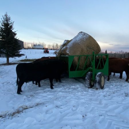 The Cattleman’s Choice Feeder wagons work great. The flip-up bars are great for clean out. They are super heavy-built and super nice for moving around to different spots. They will last for years!