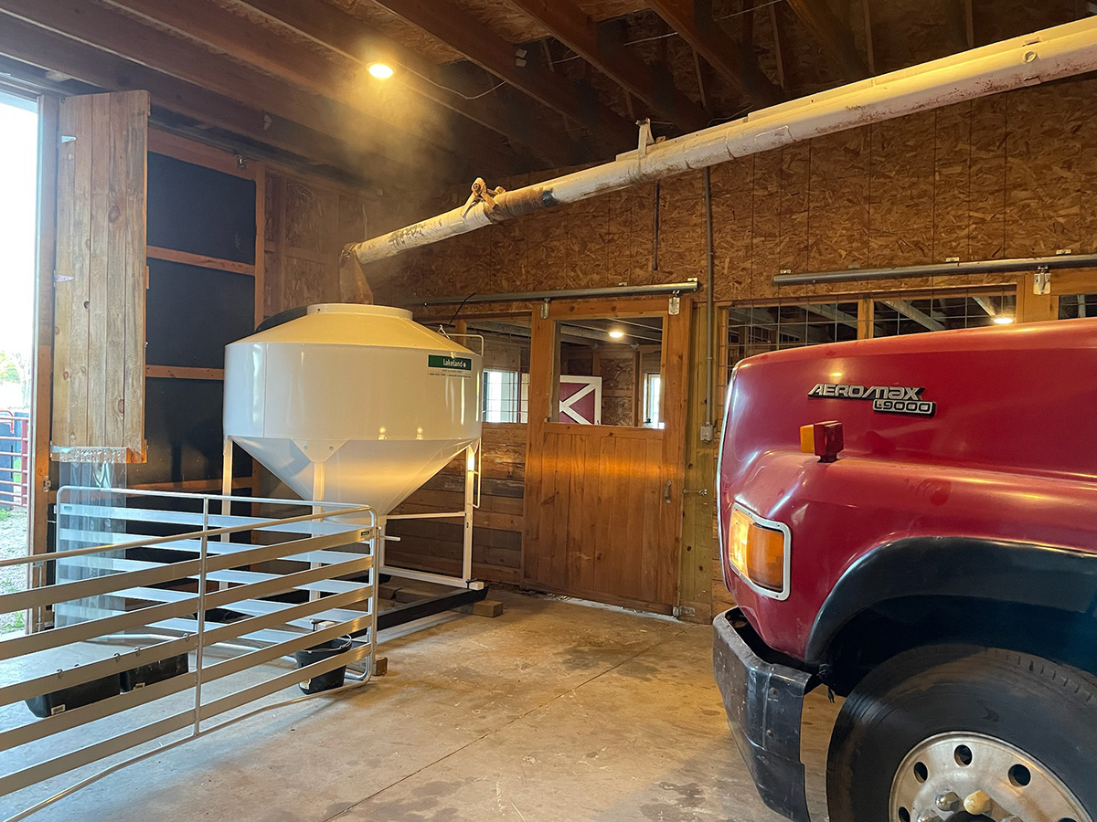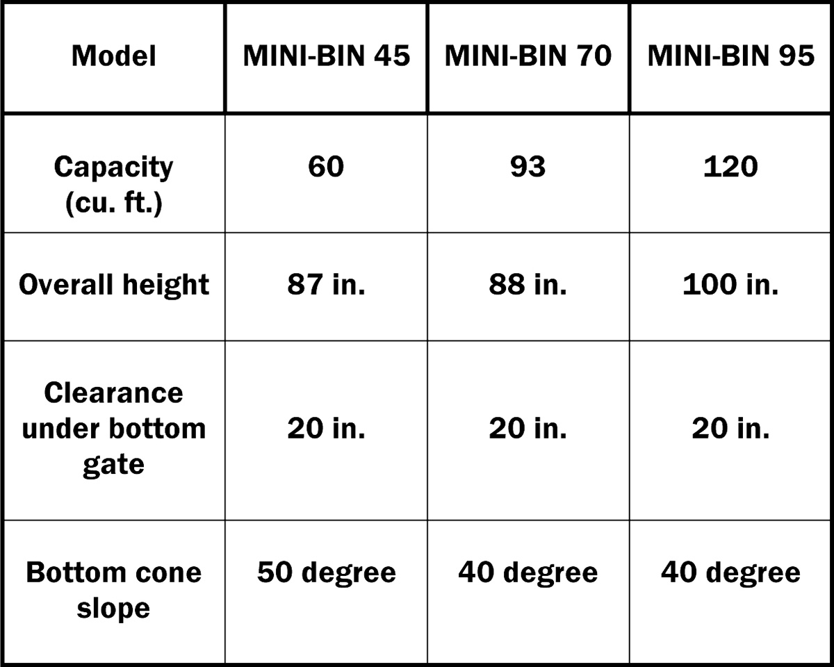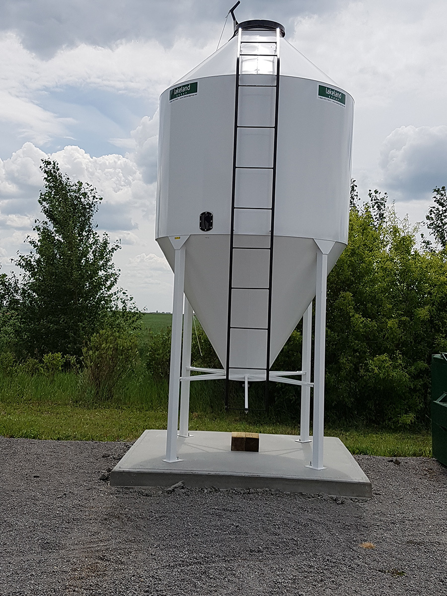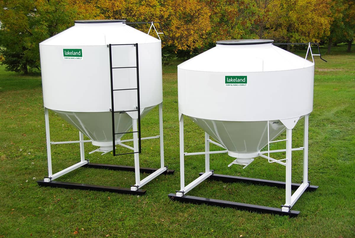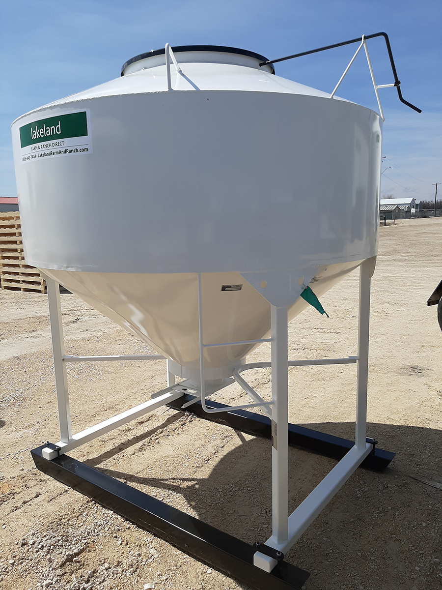 The Lakeland Mini Bins are ideal for storing supplements, minerals, fertilizer, or bulk materials that are pail-fed to your livestock. These versatile bins are built with a 40-degree bottom cone, making it easy to meter and dispense products. The large top openings allow for convenient filling by mini bulk bags, and the bins can slide into the back of a pickup for easy transport. Equipped with a tube pail chute mounted at the bottom cone, the bins come complete with a sturdy steel skid foundation and a standard 30” lid. With a 20” clearance under the bottom gate, this design ensures efficient storage and dispensing.