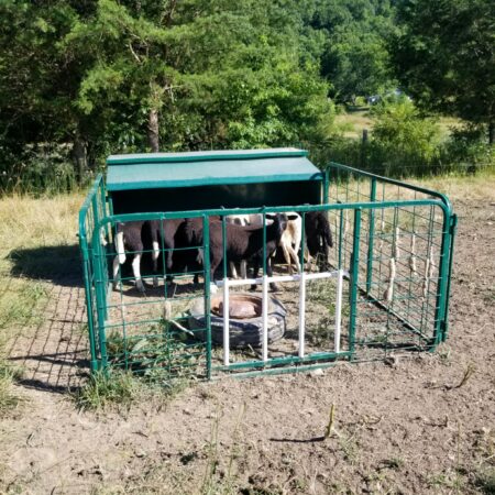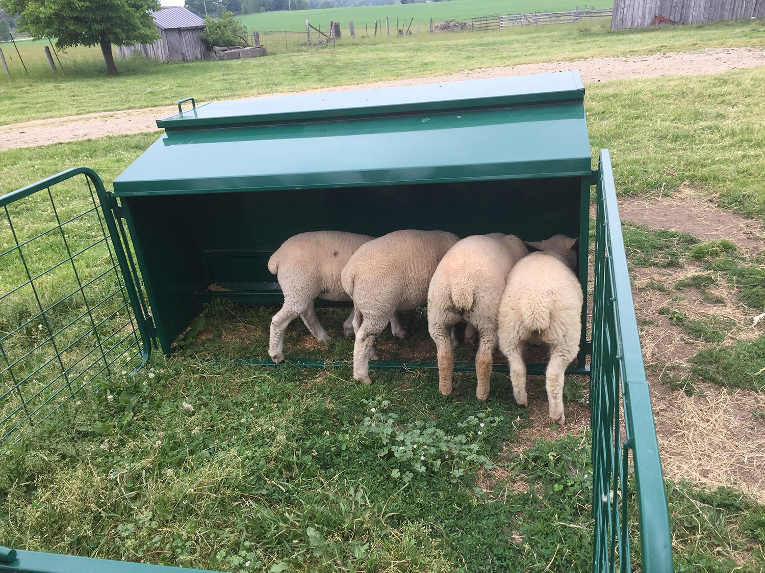 I’m writing to tell you how pleased we are with the recently purchased creep feeder. It came to us in perfect condition and is very well-designed and built. I wondered how the lambs would accept it as they are often not the brightest bulbs. Once we introduced it to them one or two caught on and before long they had influenced the others. It is really helping them put on weight. As a small flock owner, equipment must be well utilized to justify the investment. This unit is well worth the cost. We have several other pieces of equipment from you and it is no doubt we will need other things in the future. There is no doubt we will a faithful customers! — Thanks, Dan