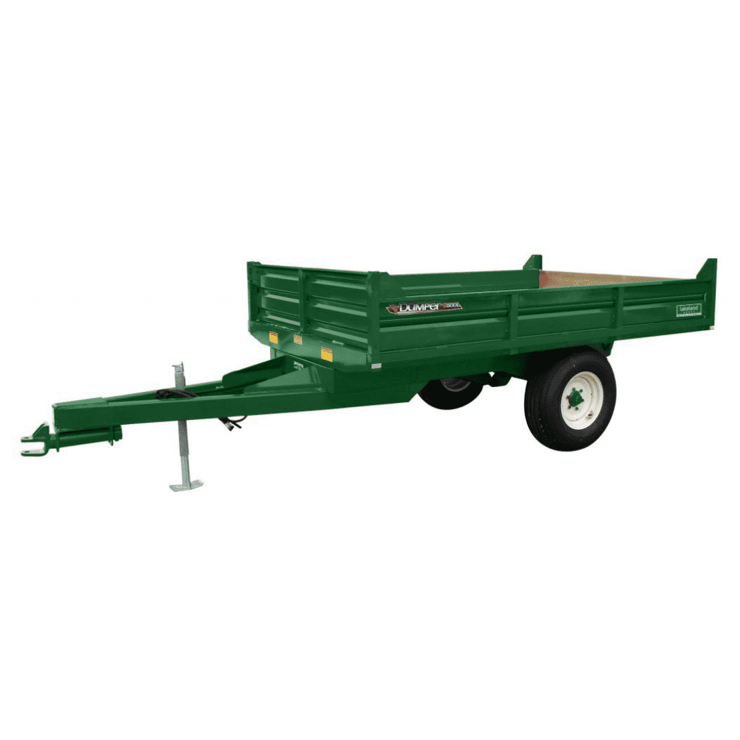 The S-500L Mighty Dumper is a 5 ton capacity, single axle utility trailer, with removable 1′ formed steel sides. Dump box dimensions: 6’ wide x 10’ long x 12” sides