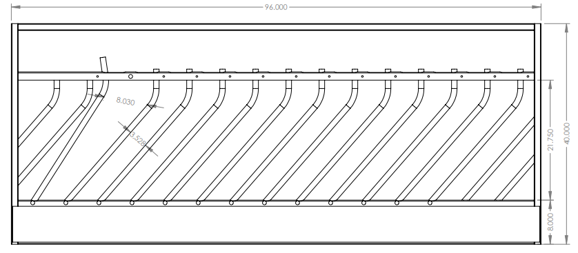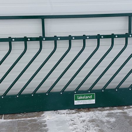 The Moving Bar Feed Front Panel is ideal for feeding sheep and goats while keeping their young—lambs and kids—safe from escaping through the feeder. The panel features moving bars that shift from side to side as sheep and goats feed, ensuring the young animals stay secure. Designed for feeding hay, grain, TMR, and more, this panel reduces feed wastage and keeps feeding efficient. Available in 6’, 8’, and 10’ lengths, the panel stands 40” high with an 8” high metal skirt at the bottom for added durability. The bars are spaced 3.5” apart and open up to 8” at the top when sheep and goats push their heads through. Built with a 1 ¼’’ square tube frame and 1’’ round tubing for the slanted bars, the panel is finished with a powder coat for long-lasting protection. The 10-foot panel weighs 135 lbs.