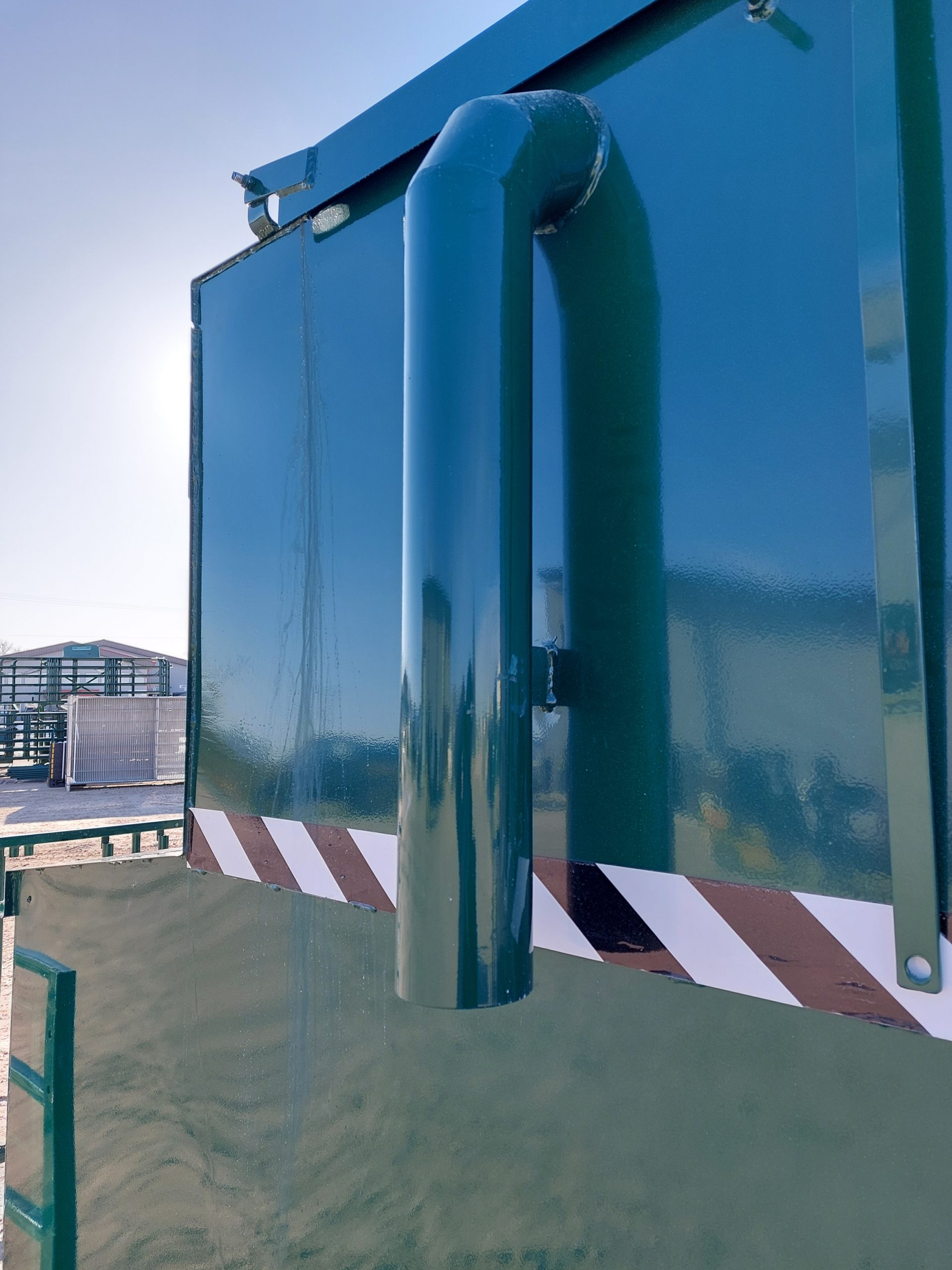 The 3 Ton CreepMaster Creep Feeder with Pens (Portable) offers a convenient and effective way to feed up to 60 head of cattle, keeping calves and cows separated for proper feeding. This portable feeder comes equipped with 15″ used truck tires on new rims and features a dolly-style front wheel system for tight cornering and easy maneuvering. Built with double-sided feeding and a 14-gauge mig-welded construction, this feeder is designed to withstand demanding farm environments. It includes adjustable feed flow and a blower fill pipe for quick and easy refilling. The calf pens measure 7′ deep by 8.5′ wide on both sides and can be flipped up or down using a hand winch (one per side), with a transport lock to secure the pens during movement. The adjustable calf creep gates can be set to 14.5″, 12.5″, or 10.5″ wide, with an easy-to-move spring-loaded adjusting bar. A full-length lid on top allows easy access, and the rain roof is designed with a 22″ slope and 1.5″ drain lip to keep the feed dry. The trough sits 27″ from the ground, measuring 17″ wide by 12″ deep. With overall dimensions of 10′ long, 94″ wide, and 92″ high, and an empty weight of 2,695 lbs, this feeder is built for durability and ease of transport.