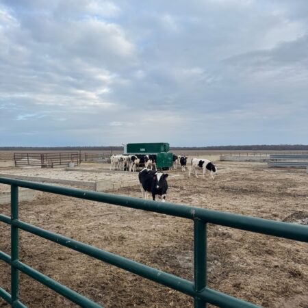 The 5 Ton CreepMaster Self Feeder (Portable) is designed to feed up to 100 head of cattle efficiently, with the added convenience of portability. Equipped with wheels and 16″ used truck tires on new rims, this feeder is easy to move and maneuver. The dolly-style front wheels allow for tight cornering and easy steering. With double-sided feeding and a 14-gauge mig-welded construction, the feeder is built to withstand heavy use. The adjustable feed flow and blower fill pipe make refilling and feeding simple, while the 4ft & 8ft lid on top provides easy access. The rain roof, designed with a 22″ slope and 1.5″ drain lip, keeps feed dry, and the 28″ high trough ensures comfortable feeding for cattle. The trough measures 17″ wide by 12″ deep, and the entire feeder is powder-coated for durability. With an empty weight of 2,500 lbs and dimensions of 12′ long, 94″ wide, and 92″ high, this portable feeder is a reliable addition to any cattle operation.