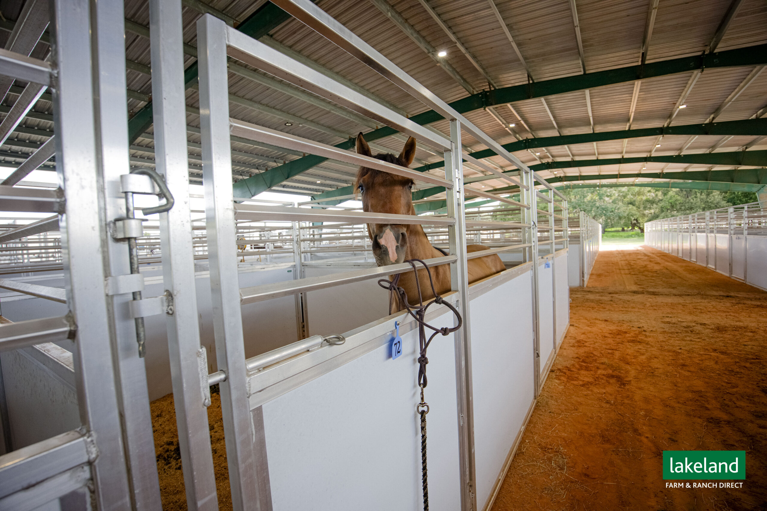 Yes. Designed for versatility, Lakeland’s portable horse stalls perform beautifully under tents or in open-air setups. Their finishes withstand exposure to the elements while remaining easy to clean and maintain. You can also purchase a roof system for them to make ultimately weatherproof.