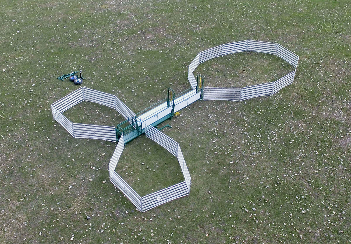 • 1x main Portable Handler system with 3-way sorter, folding stop gate, 8ft alleyway, guillotine gate – 1 piece construction.