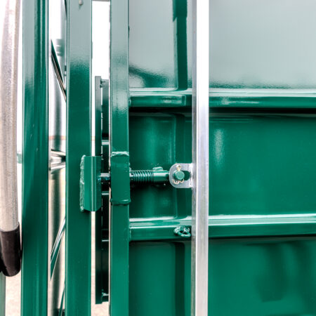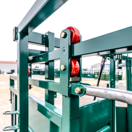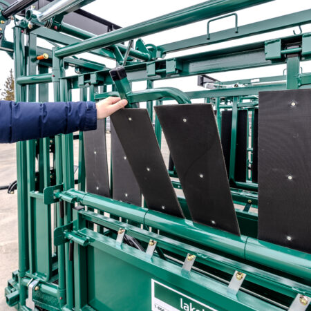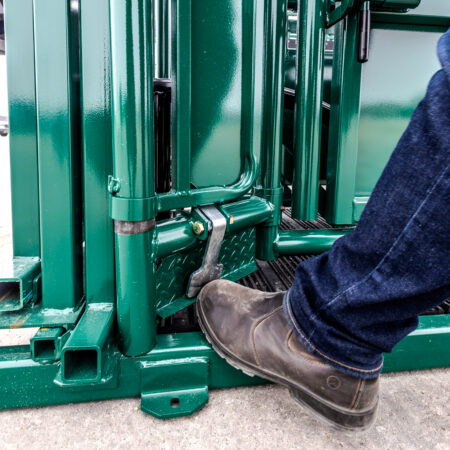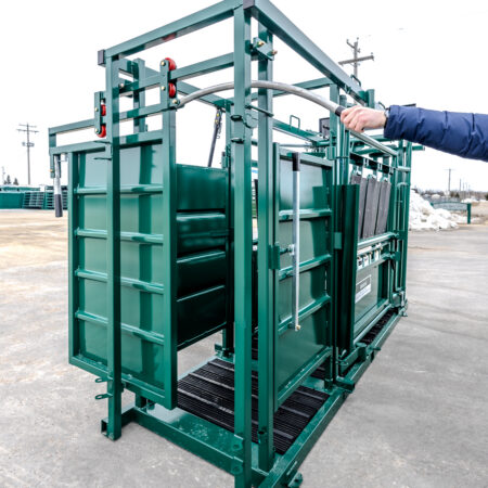 The Premium C-Series squeeze chute uses reinforced steel construction for long-term durability. At the same time, its adjustable squeeze range handles animals from 12″ to 30″ wide.
