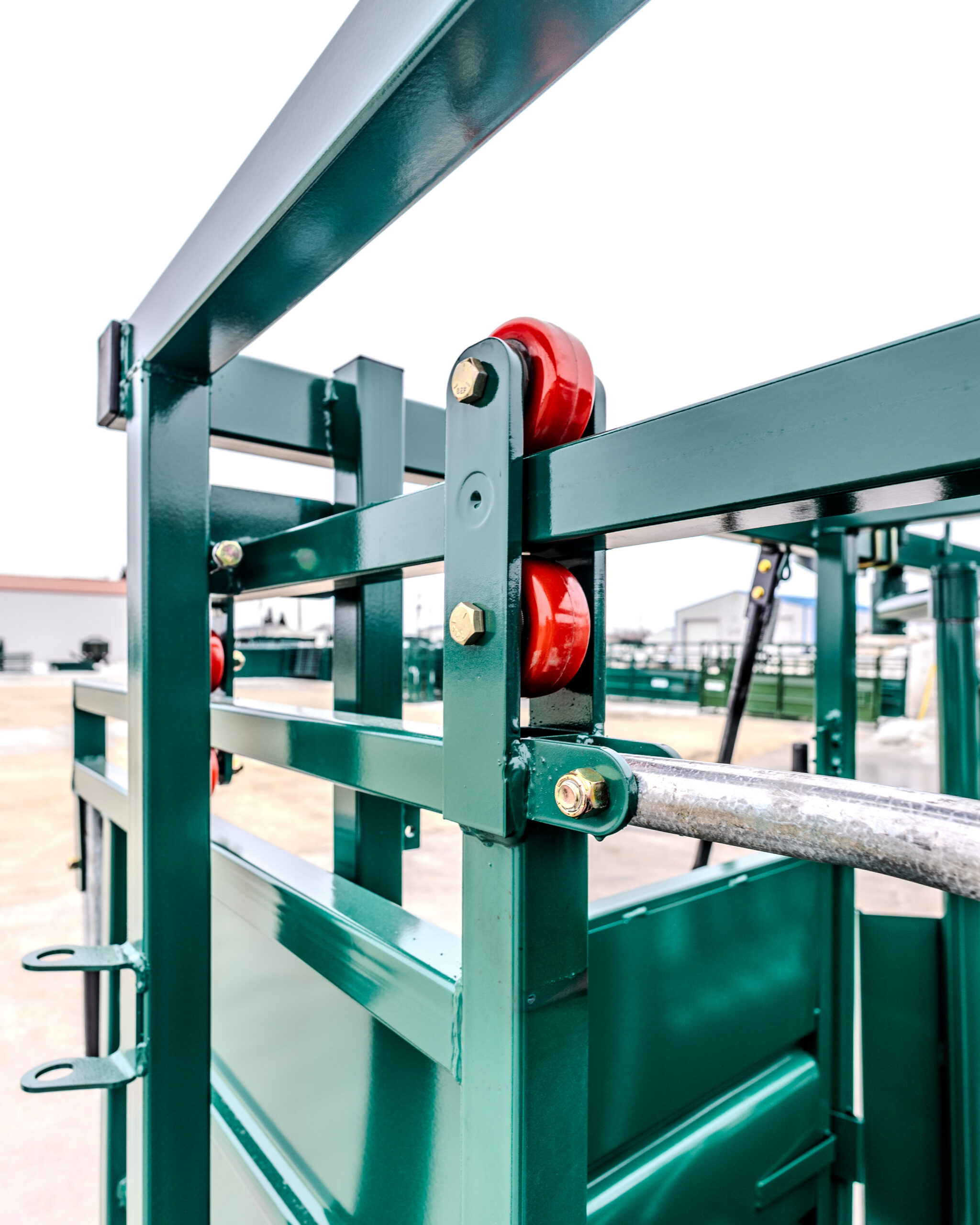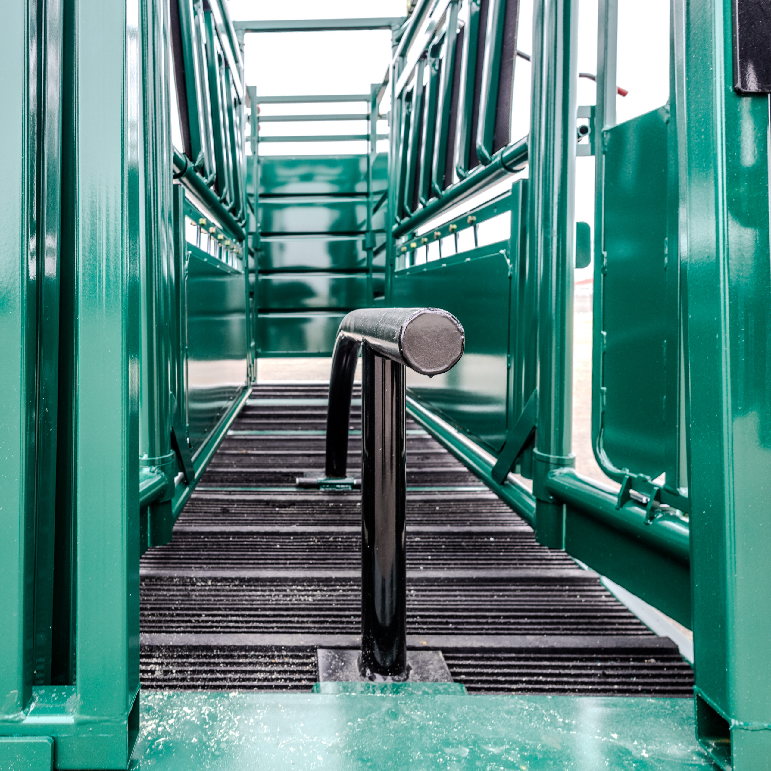 - “Easy” view headgate – the headgate has open bars instead of solid sheeting, so the animals can see the light ahead and flow better.