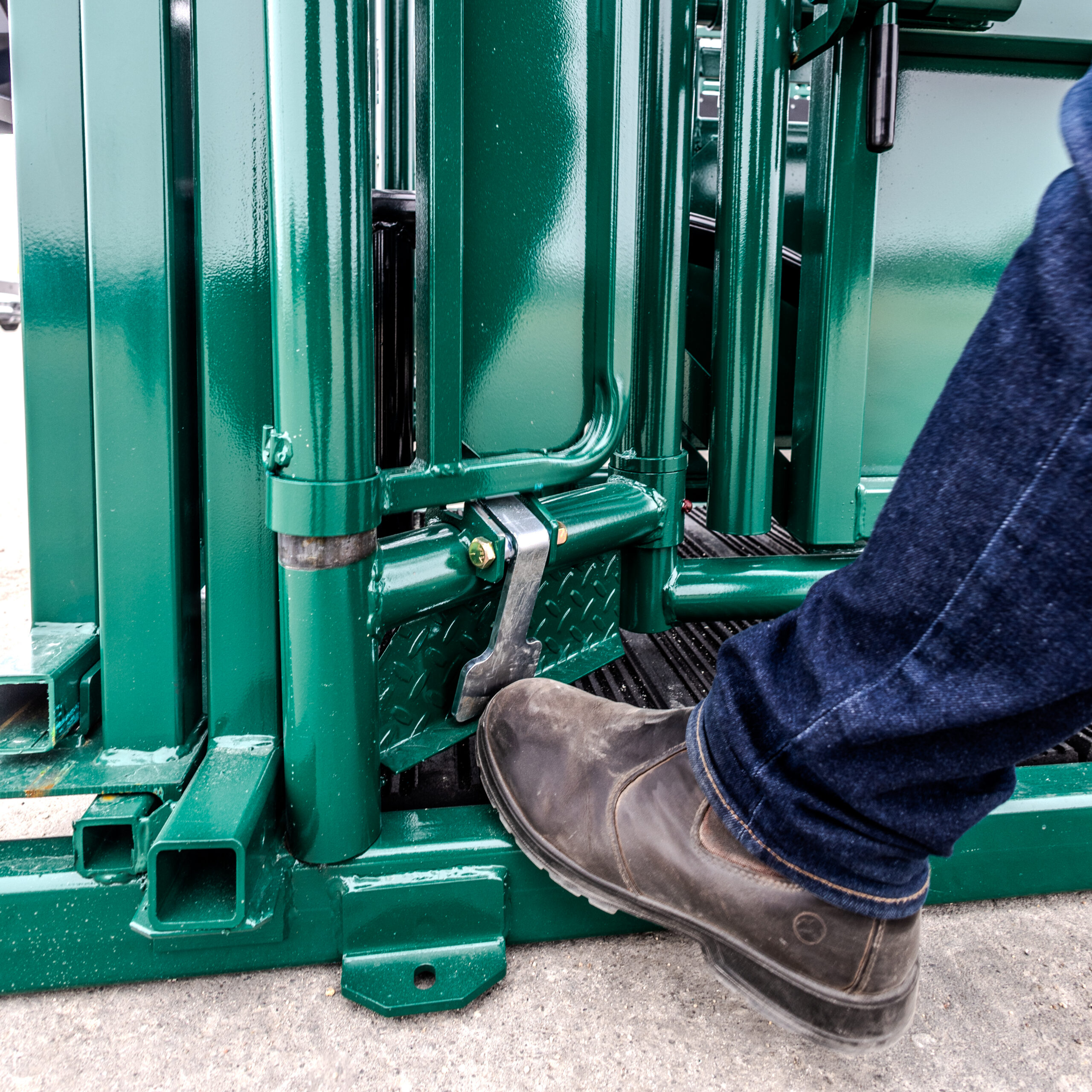 This cattle squeeze chute includes practical features that support daily operation: