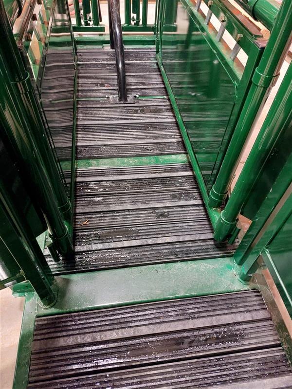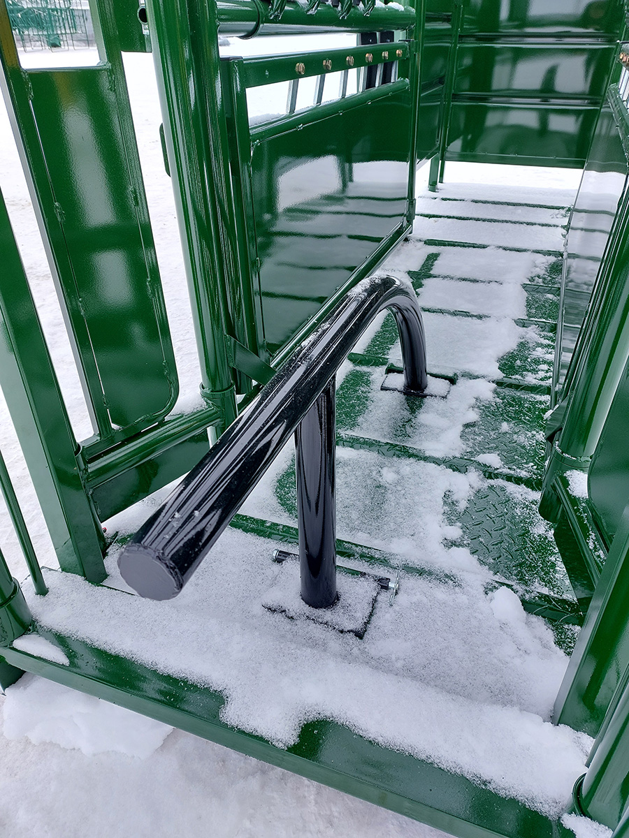 - “Easy” view headgate—the headgate has open bars instead of solid sheeting, so the animals can see the light ahead and flow better.