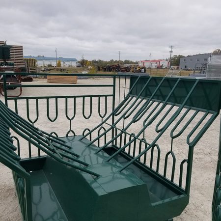 Spaced feeding rings (or “tombstone” slots) ensure that cattle and other livestock reach their feed without crowding or injury.