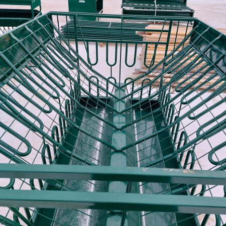 4″ x 4″ Wire Mesh inside to hold the bale. Tombstone design for less hay wastage.
