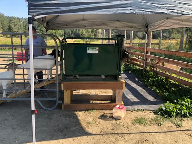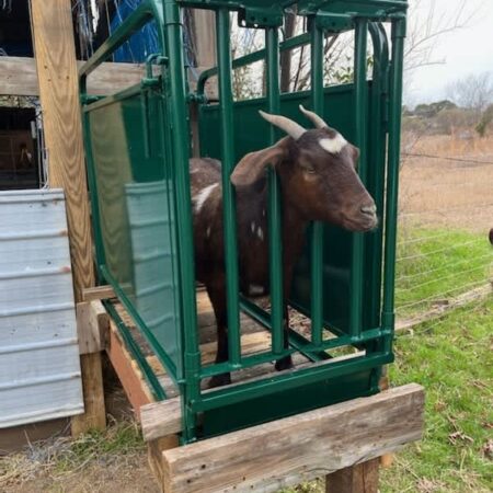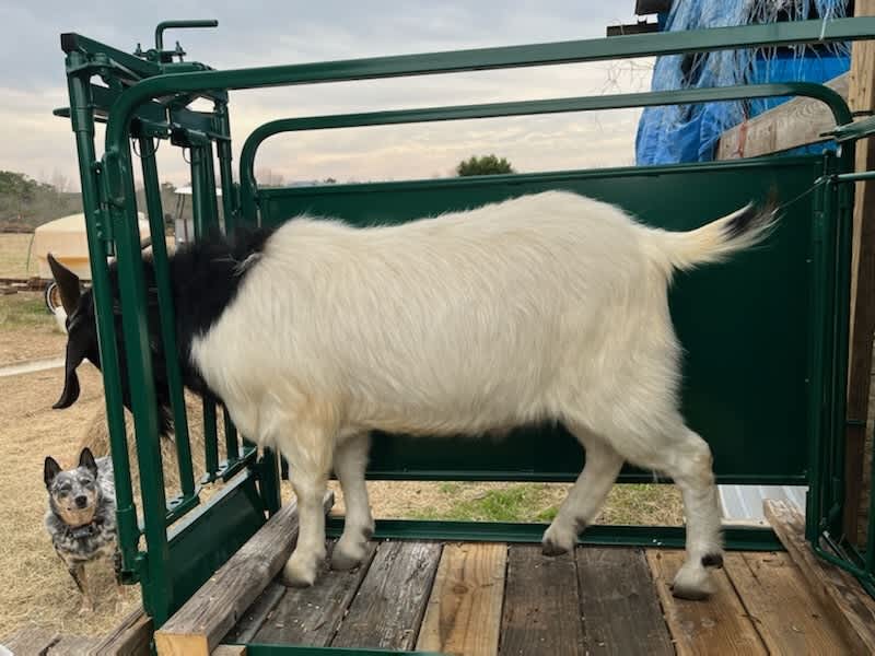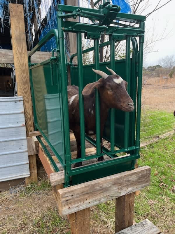 We got the head gate and chute this afternoon and trimmed goat nails. It works great, even with our big male. Thank you