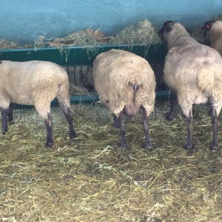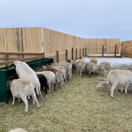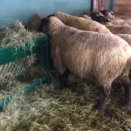 These are big ewes, so they eat out of the top first and then pull through the bars. There isn’t much waste